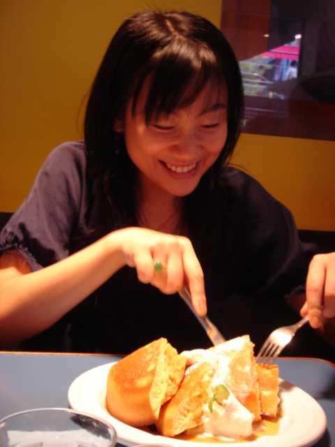休憩時間に入ったカフェで注文したパンケーキの厚みと盛りつけが感動もので、このイベントの司会をしてくださった、αステーション TWILIGHT AVENUEのDJ後藤さんやスタッフのみなさんと何故か、パンケーキの撮影会になりました!それを頬張る私もなぜか撮影されるの巻…(笑)